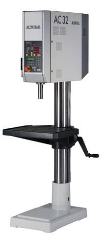 | Optionen: 12. Haloflex Machine Light, adjustable (Halogen 24 V/IP 64) 17. Foot Emergency Off Switch 24. Coolant Attachment A*, integrated in base plate with overload-protected pump and accessories 25. Coolant Attachment B, separate container (33 l), with overload-protected pump and accessories 33. Mechanic. and Electric. Preparation for Index table, turret drill-head or clamping fixture |upon request 34. Further division of Index table up to end limit upon request switch after 360 degrees |upon request 40.5 Data Interface V.24/RS-232C for input and output of programmes from/to external memory units or for printing programmes 40.7.1 Special Software for free programming of control cycles, i.e. turret head, index table etc. 40.8 AC Table Table Adjusting and Blocking from the Front clamping area 630 x 410 mm T-slots: 5 x 14 x 100 mm, machine base with foot cover, w/o splash guard 42. Increased Column Length, 200 mm for example multi-spindle or turret head 44.0 Combination Square Table with at opposite side mounted vice 47.3.1 Steep Taper ISO Spindle DIN 2079-30 only for multi-spindle or turret drill head 47.3.3 Steep Taper ISO Spindle DIN 2079-30 Tool clamping by means of collect chuck and cup springs for clamping by steep taper shaft DIN 69871 with draw-in bolt DIN 69872. Tool clamping and releasing electrical. In connection with item 48. reduction of spindle stroke by 25 mm turret drill head 48. Flange Quill for mounting a multi-spindle head or turret head, less 20 mm travel, max weight 50 kg recommending pos. 47.3.1 49. Coolant Supply for Multi-spindle Head (upon request) per spindle, only when mounted at Alzmetall 01. Special Lacquer DD-polished 02. Special Lacquer DD-structured 03. Cramp-iron Set 04. Installation and Training of Operators (upon request) approx. 6 hours, costs distance-depending, ordering 3 weeks in advance 05. Special Voltages upon request 08. Wooden Packing for AC32 (wooden crate) standard 08. Wooden Packing for AC32 (wooden crate) for AC32/HST and turret * = net weight increases with 60 kg |