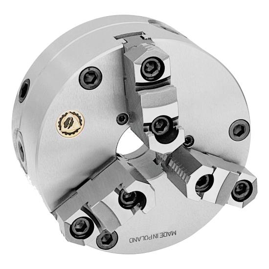 • The clamped workpiece is adjusted to the required concentricity by means of 4 (8 for sizes 400 mm, 500 mm, 630 mm) radially arranged adjusting screws