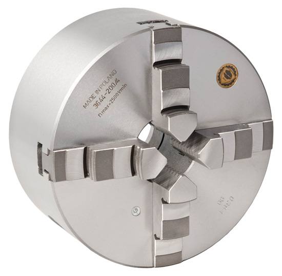 Bison 4-jaw self-centr. scroll chuck Mounting Type D 3644-250-5Lathe Chucks - Self-Centering Scroll Chucks - 4-Jaw - Mounting type D (DIN 55029) |