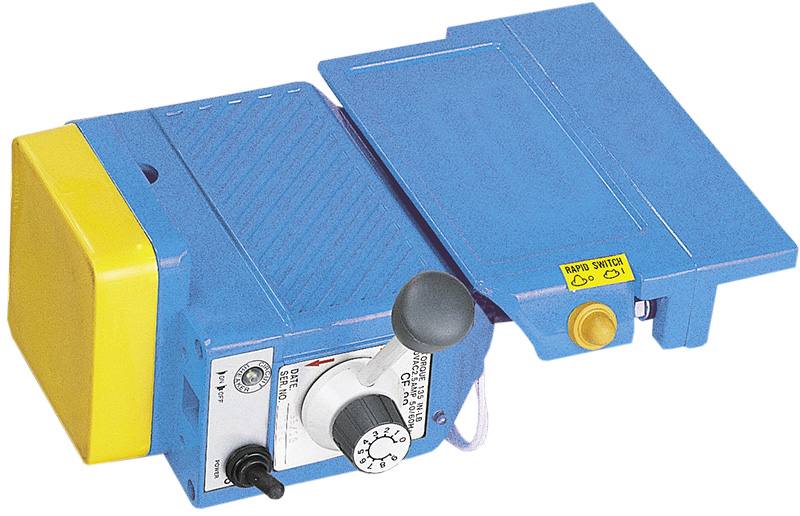 Der horizontale Frästischvorschub TV 1000 M ist stufenlos im Bereich von 19 bis 800 mm/min regelbar. 2 verstellbare Tischanschläge bewirken das automatische Abschalten. Durch Einschalten des Eilgangs (1000 mm/min) kann der Tisch rasch positioniert werden. Das Drehmoment beträgt 12 Nm. Das Tischvorschubaggregat TV 1000 lässt sich bei fast jeder Fräsmaschine nachrüsten. Auch nach der Montage des TV 1000 M ist manuelles Verfahren möglich.