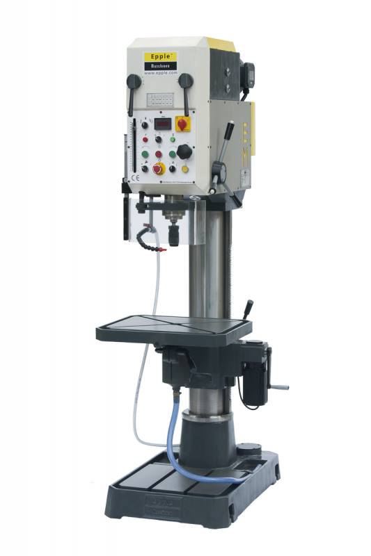 » Schweres für hohe Beanspruchung ausgelegtes Getriebe, im Ölbad laufend » Gehärtete und geschliffene Zahnräder » 12 Geschwindigkeiten über Getriebeschalthebel und 2-stufigen hochwertigen Alu-Antriebsmotor schaltbar » Verwendung von speziellem Material um die Langlebigkeit des Vorschubs zu gewährleisten » Vorschub-Schneckenrad aus Phosphor-Bronze für höchste Belastung und Lebensdauer » Gehärtete und geschliffene Hauptspindel aus Hochleistungsstahl EN 353 » Drehzahlen von 25 - 2.235 min-1 » Schalter für Rechts/Linkslauf » Digitale LED-Drehzahlanzeige » Vorwahlschalter für Bohren, Gewindeschneiden und Serienfertigung Gewindeschneideinrichtung für Gewindeschneiden bis M 48 schaltbar mittels elektrischer Griffkreuzschaltung » Automatischer Pinolenvorschub mit 4 Geschwindigkeiten mit elektromagnetischer Kupplung mit Überlastsicherung und elektrischer Griffkreuzschaltung » Integrierter gehärteter Konusauswurf für lange Lebensdauer » Einstellbarer Bohrtiefenanschlag mit Millimeterskala, frontseitig ablesbar » Massiver, handgeschabter und stabiler Arbeitstisch mit T-Nuten für 14 mm Nutensteine, dreh- und schwenkbar mit umlaufender Kühlmittelrinne » Massive handgeschabte Fußfläche mit umlaufender Kühlmittelrinne » Komfortable kraftvolle elektrische und mechanische Tischhöhenverstellung über Zahnstange » Kugelgelagerte Zahnstangenauflage, dadurch sehr leichtes Drehen des Tisches um die Säule auch unter schwerer Last » Höhenverstellbarer Bohrschutz mit Schutzscheibe und automatischer Abschaltung durch Mikroschalter |
