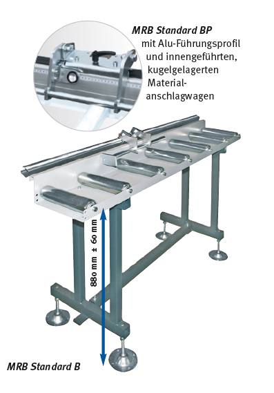 MRB Standard BP - das Rollen- und Messbahnsystem in stabiler Konstruktion mit einer Tragkraft von ca. 300 kg pro Meter Rollenbahn. Mit mm-Skala, manuellem Messsystem mit Alu-Führungsprofil |